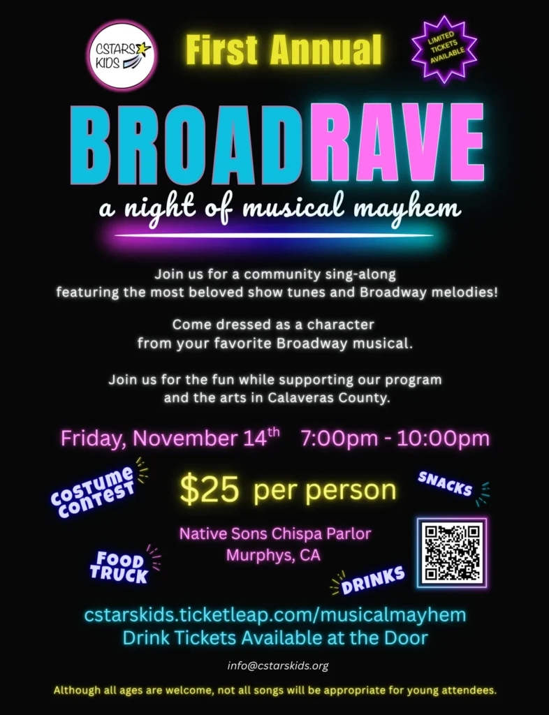 BroadRAVE – tickets available NOW here https://www.ticketleap.events/tickets/cstarskids/musicalmayhem